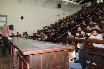 El Decano de la Facultad de Ciencias Exactas dio la bienvenida a los ingresantes 2017 de las distintas carreras de nuestra Facultad. En el anfiteatro de Física, casi repleto, Carlos Naón destacó, entre otros conceptos, el carácter público e inclusivo de los estudios universitarios, instó a los alumnos a que tengan pasión por lo que van a estudiar y que, en este paso muy importante de sus vidas, deben aprovechar al máximo todas las oportunidades que les brinda la Facultad y todos los trabajadores de la misma. Posteriormente el Espacio Pedagógico explicó en que consiste el curso introductorio y su modalidad de implementación; ya en el cierre los representantes del centro de estudiantes y las distintas agrupaciones estudiantiles les brindaron una cálida bienvenida remarcando que están para ayudarlos y acompañarlos en todo momento.