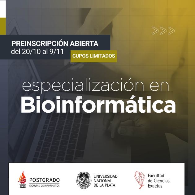 Para información de las Inscripciones entrar al siguiente enlace: https://postgrado.info.unlp.edu.ar/bioinformatica-datos-administrativos/